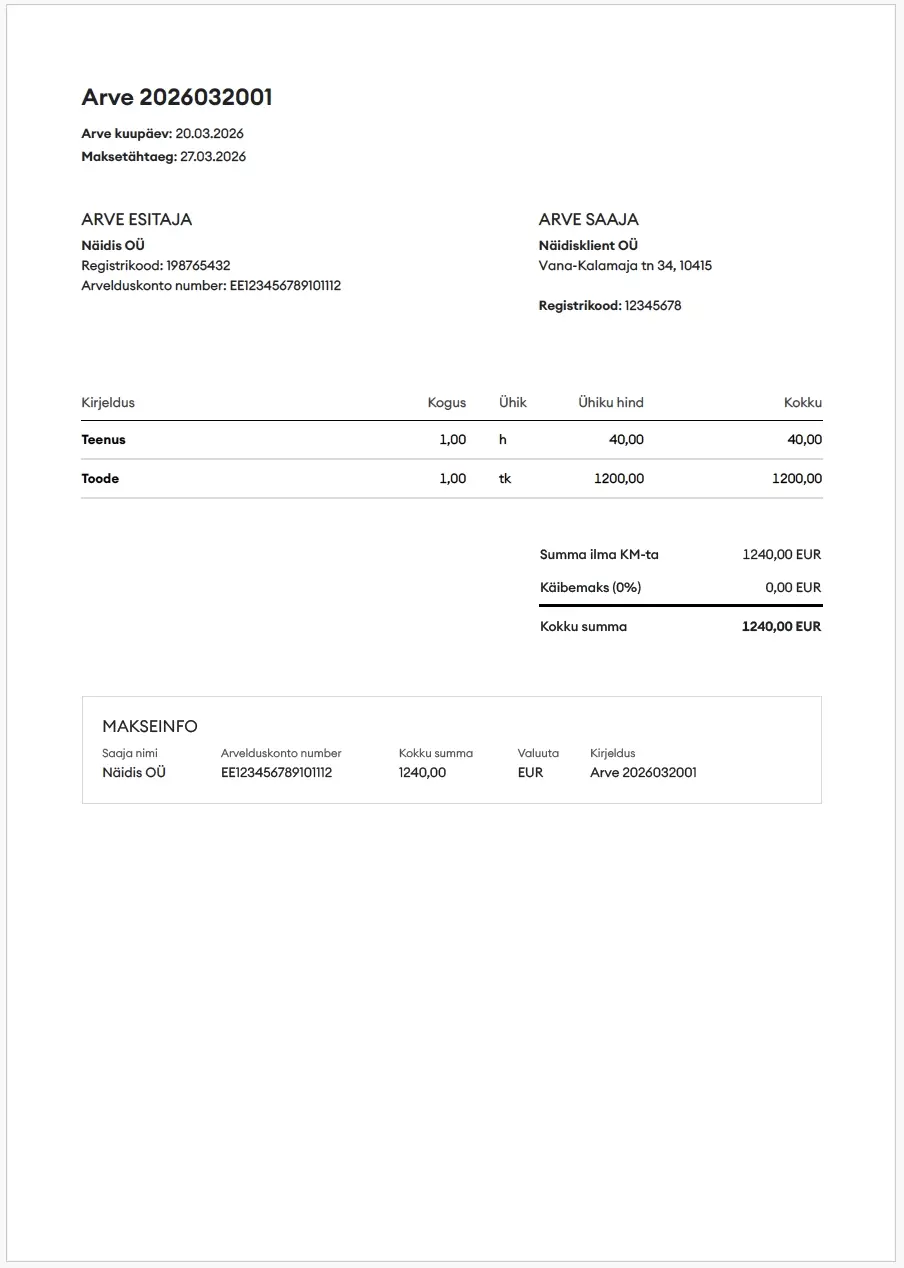 Kui need väljad on olemas, on arve korrektselt vormistatud ning kliendil saab olema lihtne seda kasutada.